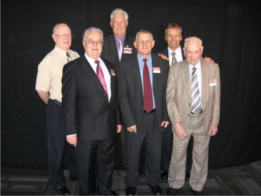 "L2R: VK4AAR, VK4CY, VK4NXZ, VK2MHB, VK4IBC, Charlie 101 y.o." Brisbane 15AUG.2010 - photo. by Marion XYL of VK4IBC. |